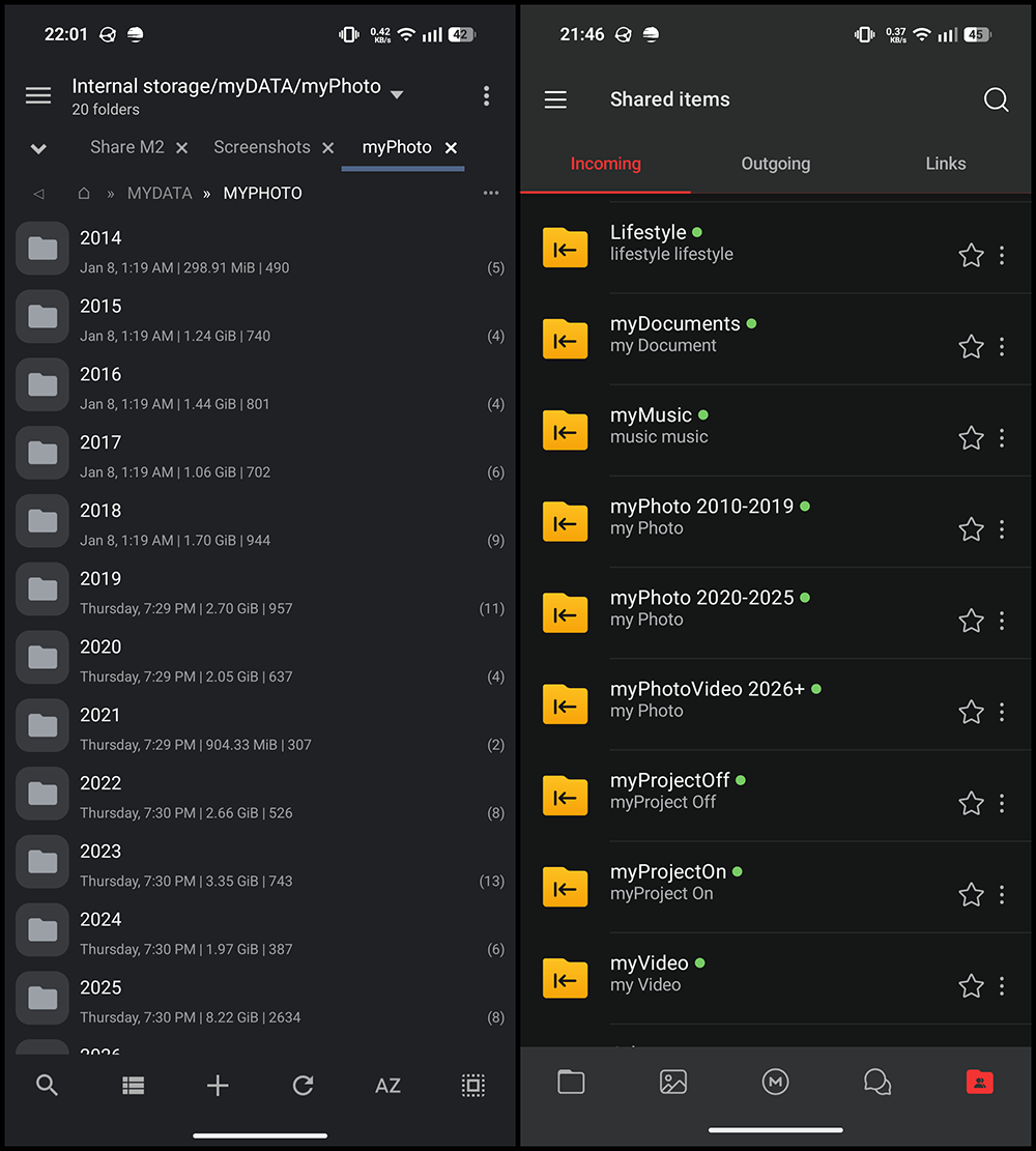 Всё. этого достаточно. В этой синхронизации будут учитываться только эти каталоги и никакие другие. Таким же образом создаем синхронизацию для папок ./myPhoto 2010-2019 и ./myPhotoVideo 2026+.